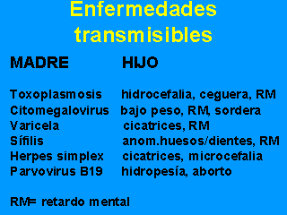 La primoinfección por citomegalovirus y sífilis resultan en infección fetal en el 40% y en casi el 100% de los casos, respectivamente, pero las infecciones secundarias pueden también infectar al feto, aunque con menor frecuencia.