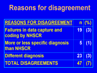 disagreements were because of problems in data capture by NHSCR. (In a few