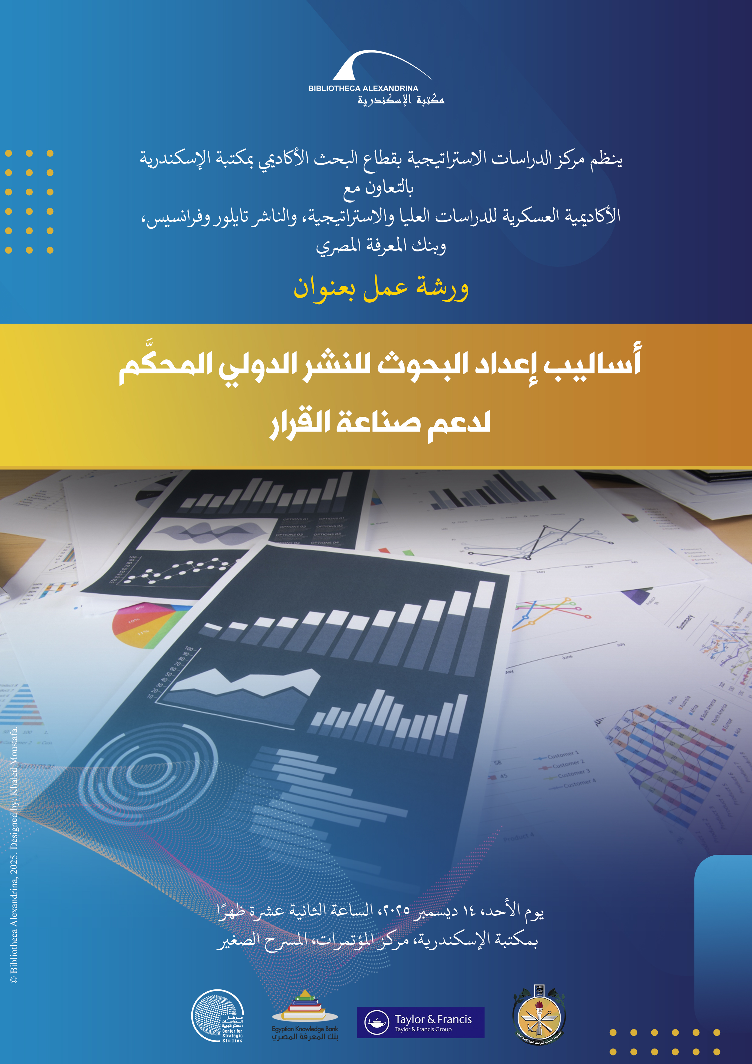 تنظم مكتبة الإسكندرية، من خلال مركز الدراسات الاستراتيجية بقطاع البحث الأكاديمي، وبالتعاون مع الأكاديمية العسكرية للدراسات العليا والاستراتيجية، والناشر تايلور وفرانسيس، وبنك المعرفة المصري، ورشة عمل بعنوان: «أساليب إعداد البحوث للنشر الدولي المحكم لدعم صناعة القرار»، وذلك يوم الأحد الموافق 14 ديسمبر 2025، في تمام الساعة 12 ظهرًا، بالمسرح الصغير بمركز مؤتمرات مكتبة الإسكندرية.