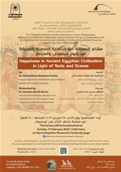 The lecture sheds light on the concept of happiness, the Ancient Egyptian’s life, religious ideas, habits, and traditions. The Ancient Egyptian was fully aware that happiness differs from one person to another based on their different attitudes. On one hand, some of them found their happiness in achievements, success, and career promotion; in pleasing the rulers and fulfilling their wishes; or in getting close to the gods. On the other hand, others found their happiness in freedom and beating enemies, or in ensuring receiving offerings after their death, as the deceased happiness was believed to be achieved through obtaining eternity after passing the judgment and the weight of the heart.